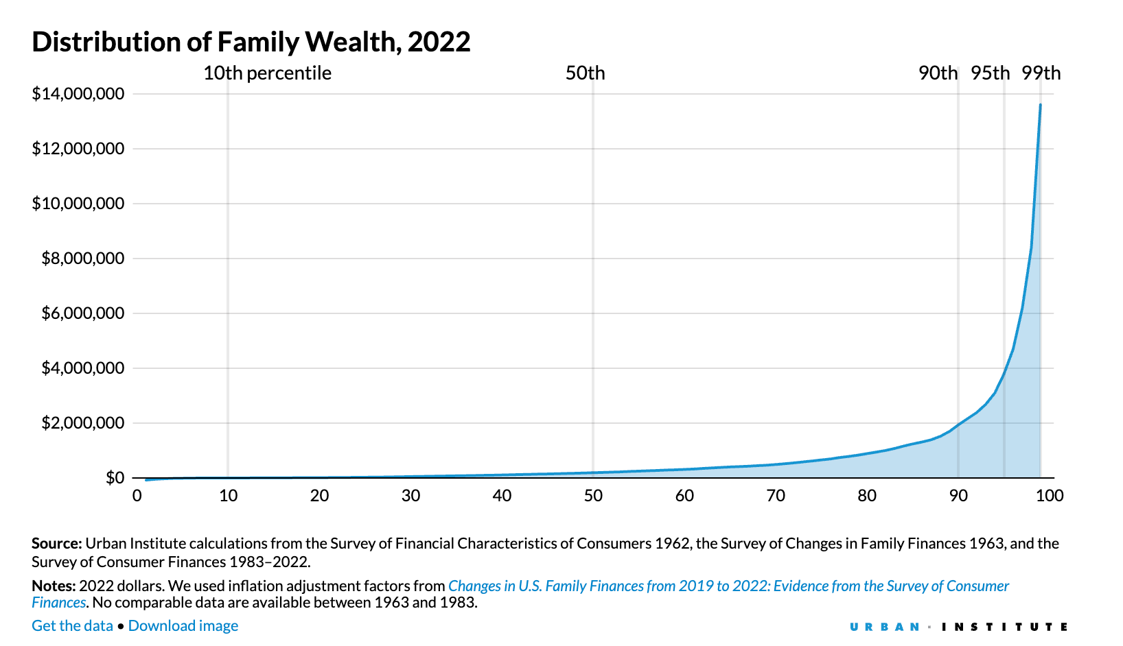 While the United States has the most billionaires, it also has the highest levels of wealth inequality among countries of similar economic status. According to the Urban Institute, "America witnessed a massive transfer of wealth from the middle class to the wealthiest families" over the last 60 years. "In 1963, the wealthiest families had 36 times the wealth of families in the middle of the wealth distribution. By 2022, they had 71 times the wealth of families in the middle."